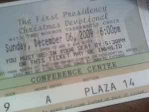 But still – here’s a photo of my ticket to the awesome Christmas Devotional I did not get to attend: