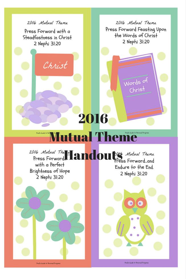 Last week I posted Young Women class presidency binders covers with the 2016 Mutual Theme on them. They are so popular, that I decided to take those same graphics and make printable handouts with them. This way anyone, even if they are not in a class presidency, can enjoy them.