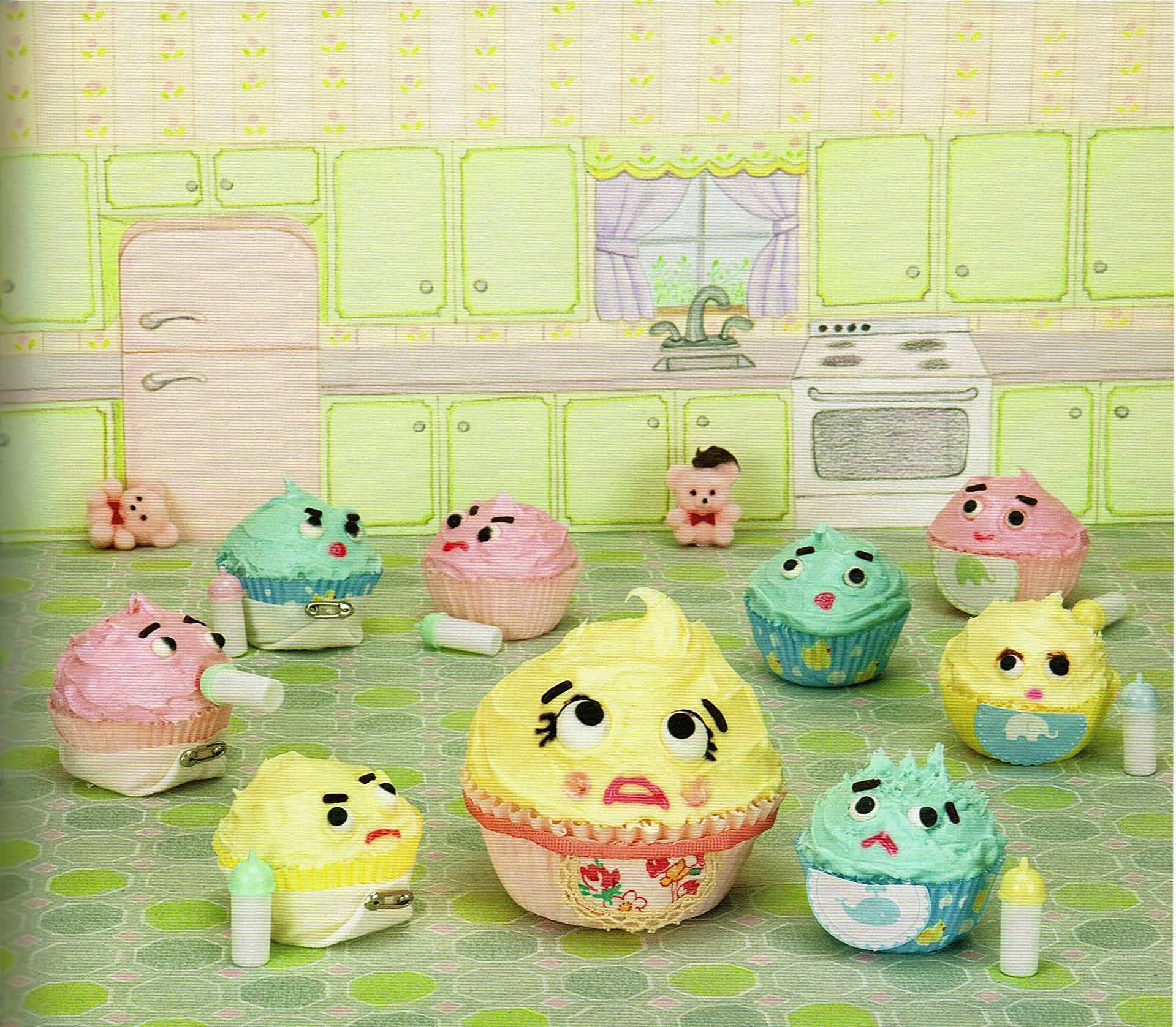 Stressed out Mama Cupcake with a pack of little ‘cakes. Photo from the book “Desperate Cupcakes” which you should buy and read.