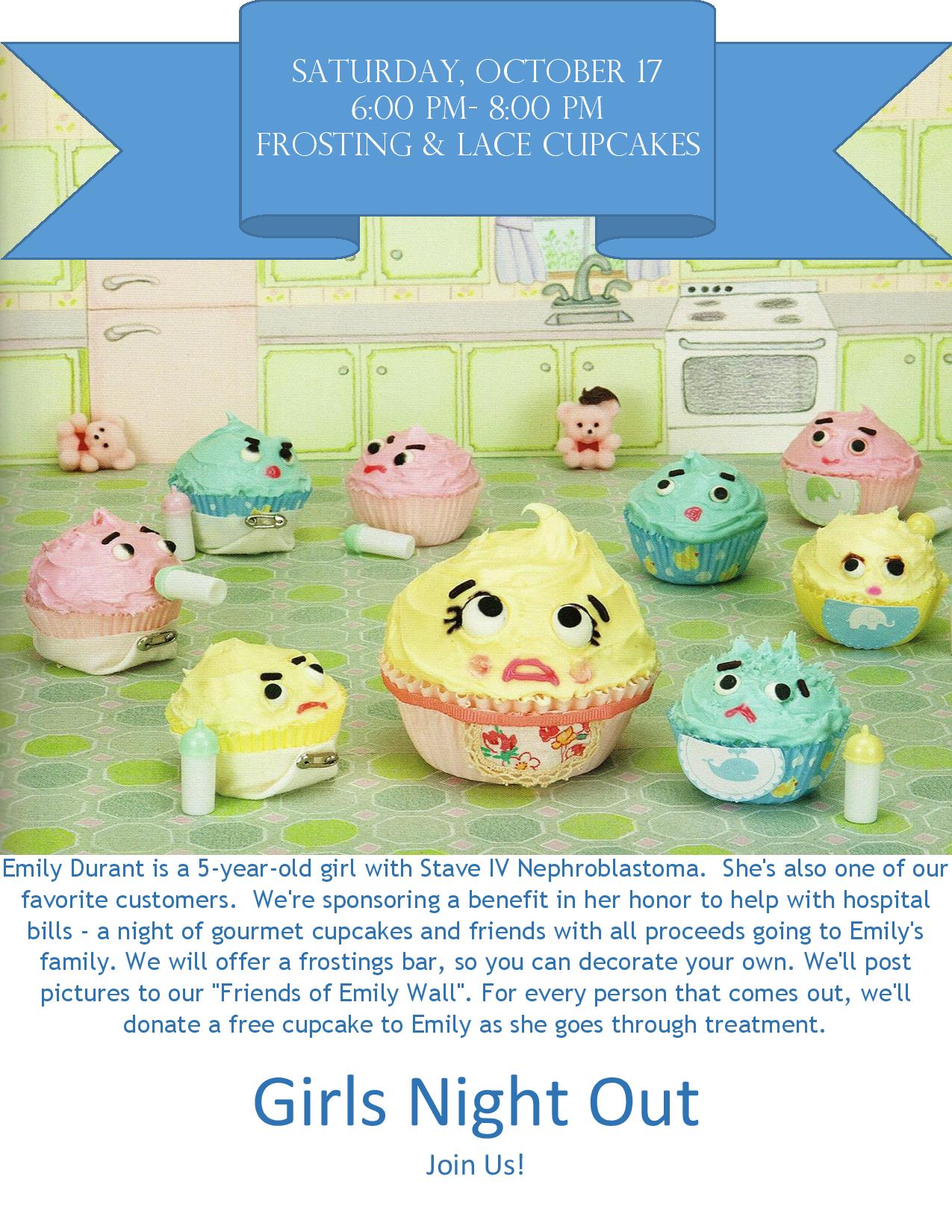 I really love the art in this book and wanted to promote/share it. Also, I just really like cupcakes. From there I came up with the idea of a cupcake bakery. It amazes me that these exist. Since NDA redacted thing kept me busy, I liked the idea of a relaxing night out, but I needed a fundraiser. As you all know, I’m a supporter of Pediatric Cancer because of my son. A cupcake shop doing a GNO fundraiser for a child with cancer – brilliant! I made up a shop name and a child’s name. The form of cancer is identical to my son’s. I used pastel and blue for my color scheme, mostly because of the book and Word’s limitations.