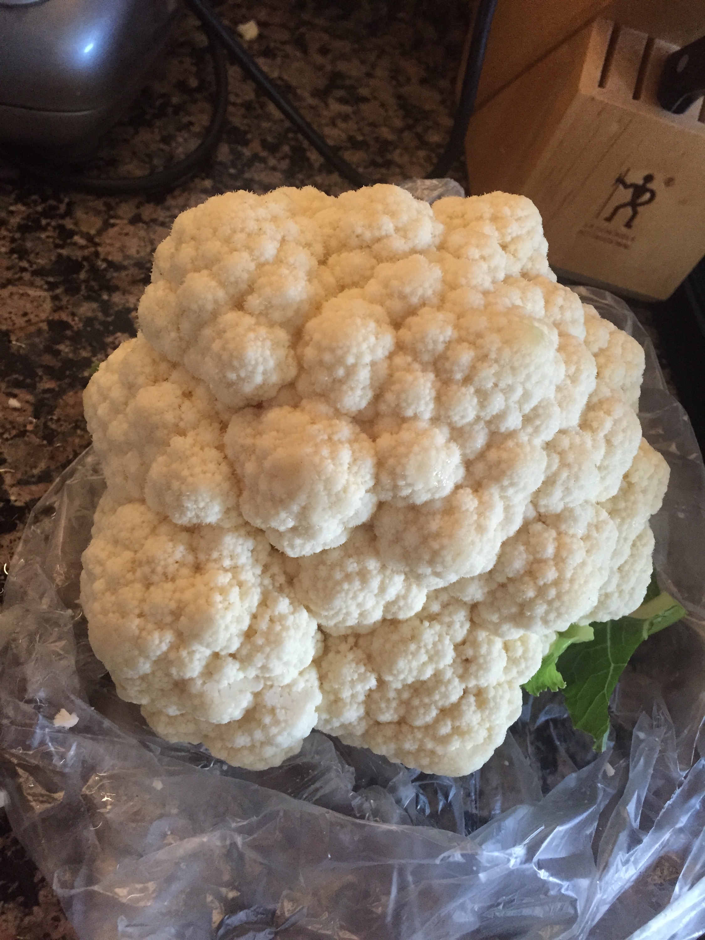 I started with my head of cauliflower. Yum. I really love cauliflower!