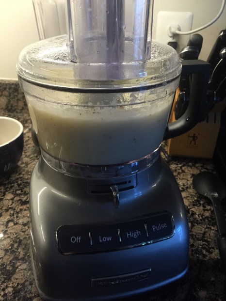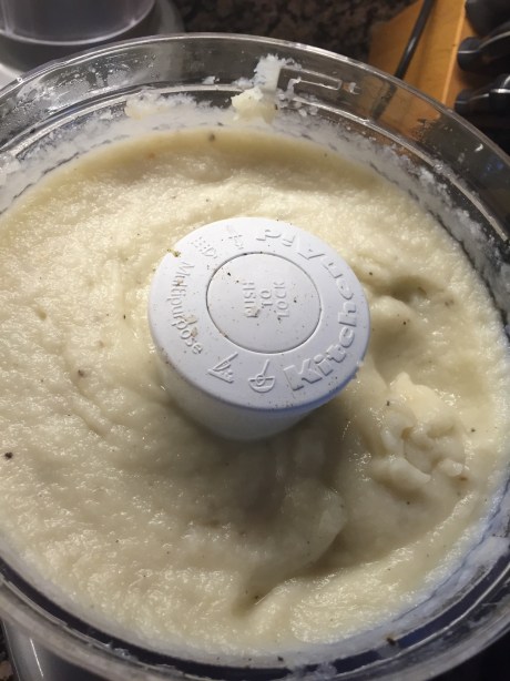 From there, I broke up the florets and boiled them for about 6 minutes. I transferred them to my Kitchenaid Food processor and pulsed the heck out of them.