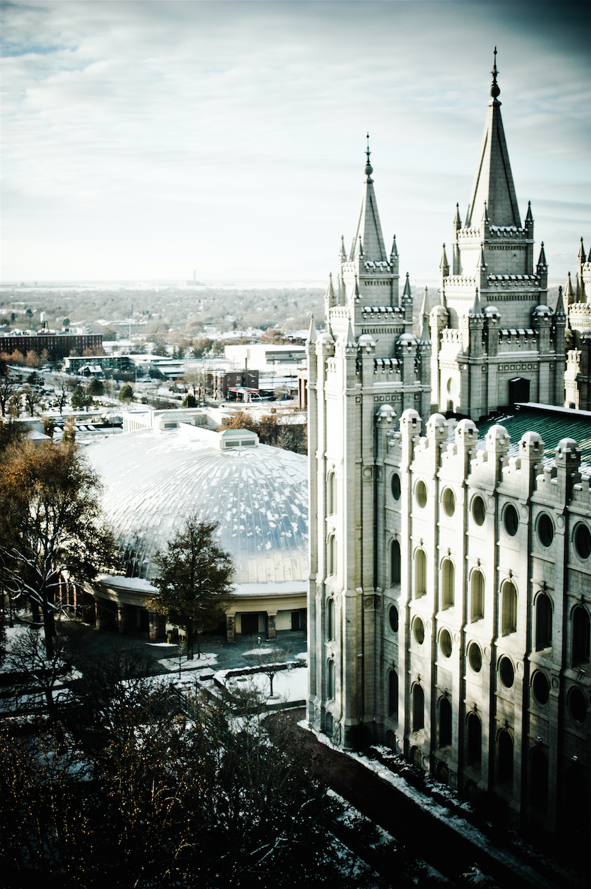 I chose my background: The Salt Lake Temple as seen from the Joseph Smith Memorial Building’s tenth floor. I love this view of Temple Square! This photo, taken several years ago in winter, is interesting. When I sat in Lightroom doing my whole workflow scene, I hit the wrong button in an attempt to just fix the color. I shot this picture through a tinted window so I needed to adjust the image to look natural. I ended up with this eerie color scheme that just “does it” for me. I quickly saved a copy and went back to my planned edits. Sorry, it was a pure accident so this is not information I have good details on from Lightroom.