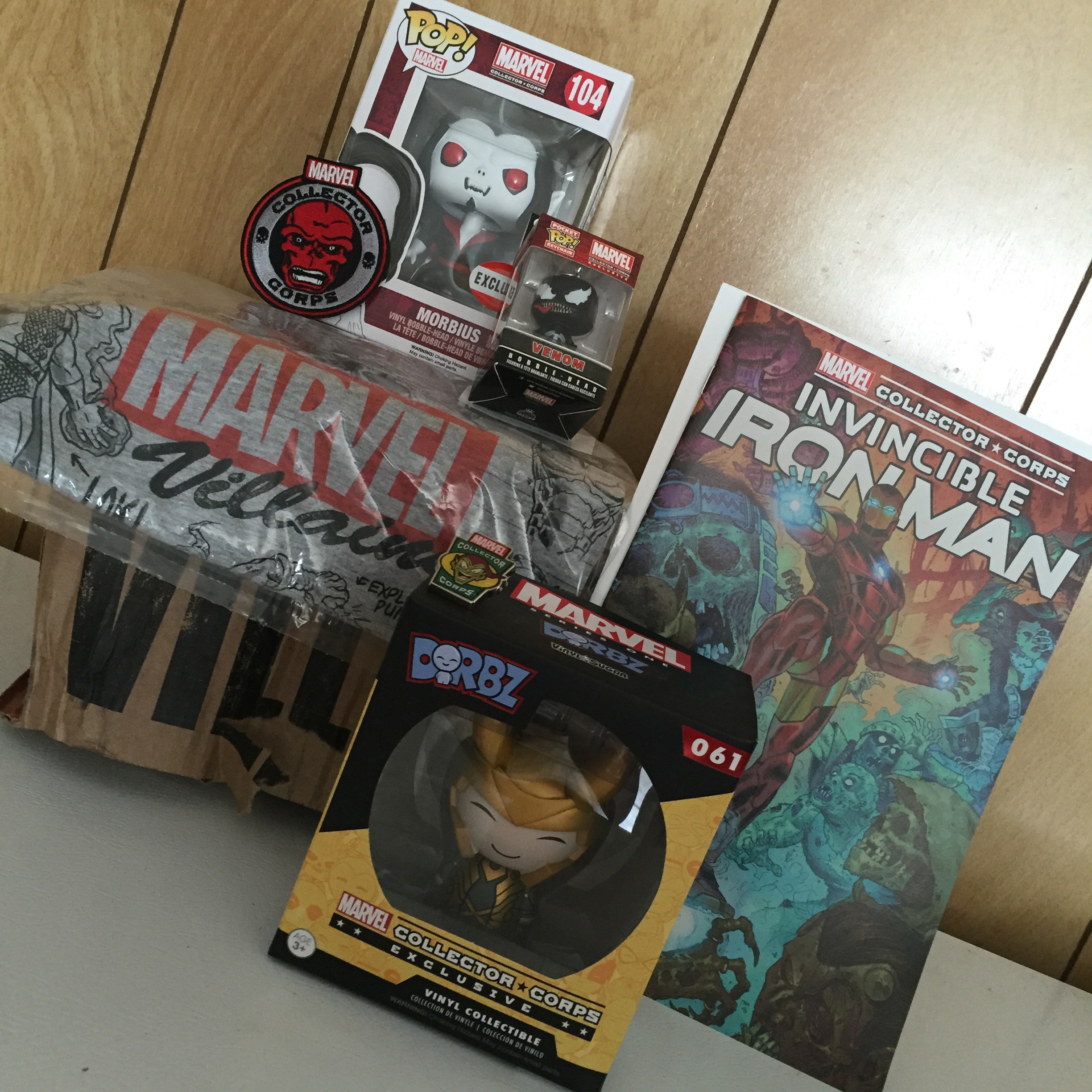 Collector Corps, comics, dorbz, Green Goblin, hydra, Iron-Man, Loki, marvel, Morbius, Pop vinyl, Red Skull, Spiderman, subscription box, Thor, Venom, villains