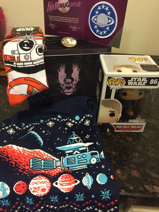Galaxy is awesome. They hit a good variety of space themed fandoms and I’m impressed. There’s not a single thing I questioned in this crate. Bonus points is that my ammo can protected everything from the torrential downpour. The box was a complete loss.